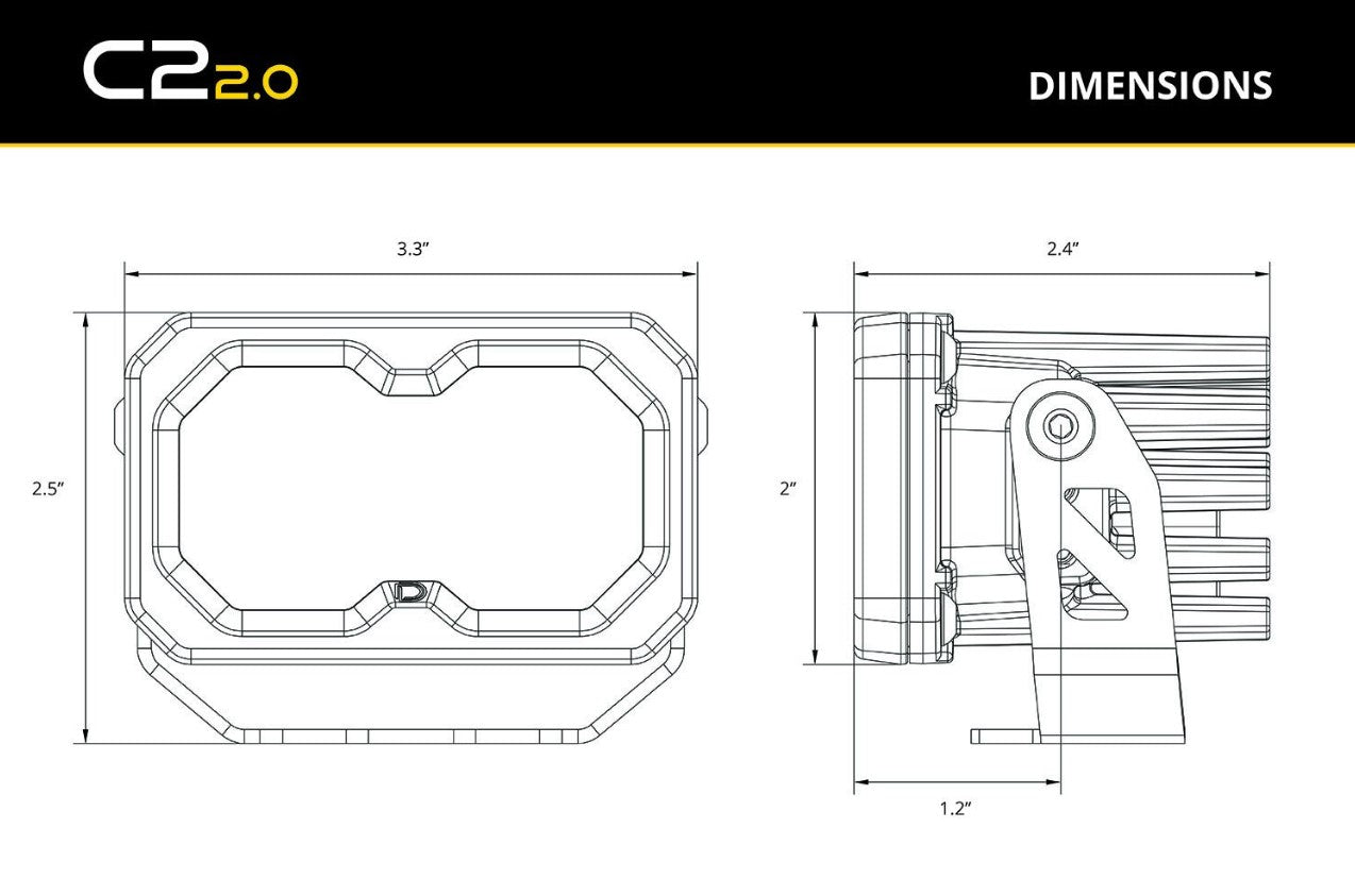 Swappable Optics and Colors. Just like before, the lenses on the C2 are swappable. But here’s what makes the C2 2.0 even better–they now use the same high-output Cool White LED chips for both white and yellow LED pods. This means changing your optic and color is just a simple lens swap away. No need to worry about color variation when switching from yellow to white! Click here to view our full lineup of replacement lenses.