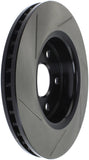 StopTech Slotted Sport Rotors are 1-piece direct replacement brake discs for factory brake systems and stock calipers that look great behind your wheels – and offer significantly improved braking performance. The unique slotting aids with heat and brake dust dispersal, prevents glazing of the pads, adds bite and improves wet and dry braking performance. Built to last, the black e-coating provides protection from corrosion and the high carbon metallurgy (in most applications) offers quieter operation, better crack resistance and increased performance.