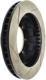 StopTech Slotted Sport Rotors are 1-piece direct replacement brake discs for factory brake systems and stock calipers that look great behind your wheels – and offer significantly improved braking performance. The unique slotting aids with heat and brake dust dispersal, prevents glazing of the pads, adds bite and improves wet and dry braking performance. Built to last, the black e-coating provides protection from corrosion and the high carbon metallurgy (in most applications) offers quieter operation, better crack resistance and increased performance.