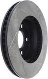 StopTech Slotted Sport Rotors are 1-piece direct replacement brake discs for factory brake systems and stock calipers that look great behind your wheels – and offer significantly improved braking performance. The unique slotting aids with heat and brake dust dispersal, prevents glazing of the pads, adds bite and improves wet and dry braking performance. Built to last, the black e-coating provides protection from corrosion and the high carbon metallurgy (in most applications) offers quieter operation, better crack resistance and increased performance.