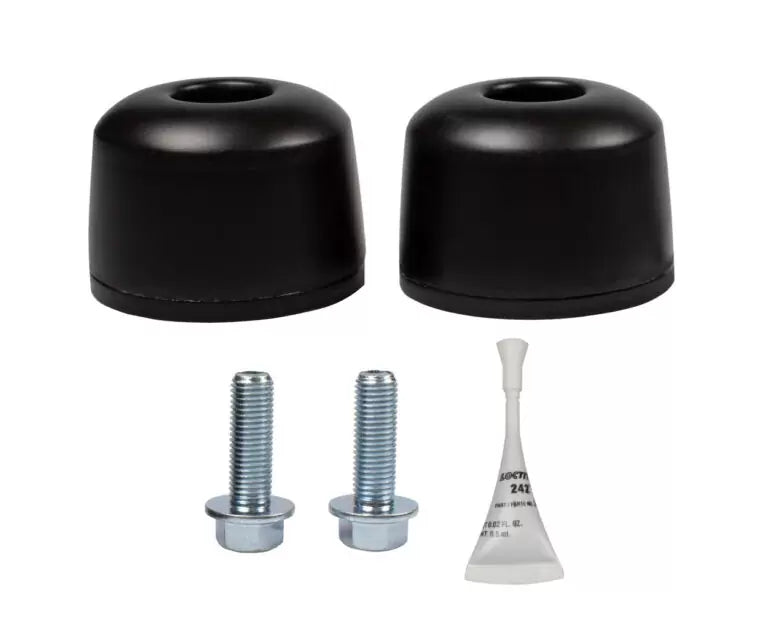 The DuroBumps DBF17T is intended to replace the rear-mounted OEM bump stops on the front passenger and driver sides of the truck. The DBF17T will not limit wheel up-travel. It’s slightly taller than OEM bump stops, allowing it to compress under load to reduce impact just prior to the ultimate stop.